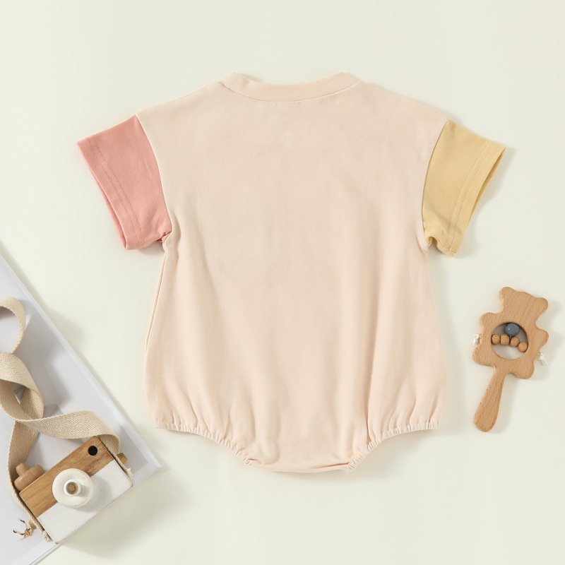 Toddlers Newborn Baby Fashion Girls Boys Casual Basic Short Sleeve Solid Color Patchwork Bodysuit