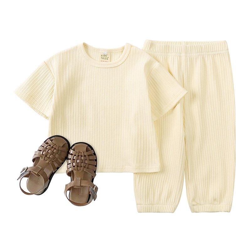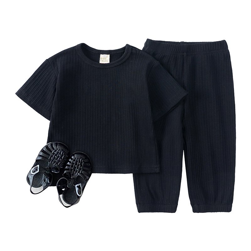 Toddlers Newborn Baby Fashion Girls Boys Casual Basic Short Sleeve Solid Color T-Shirt And Pants 2pcs Set