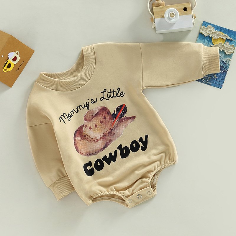 Toddlers Newborn Baby Fashion Girls Boys Long Sleeve Cowboy Print Bodysuit