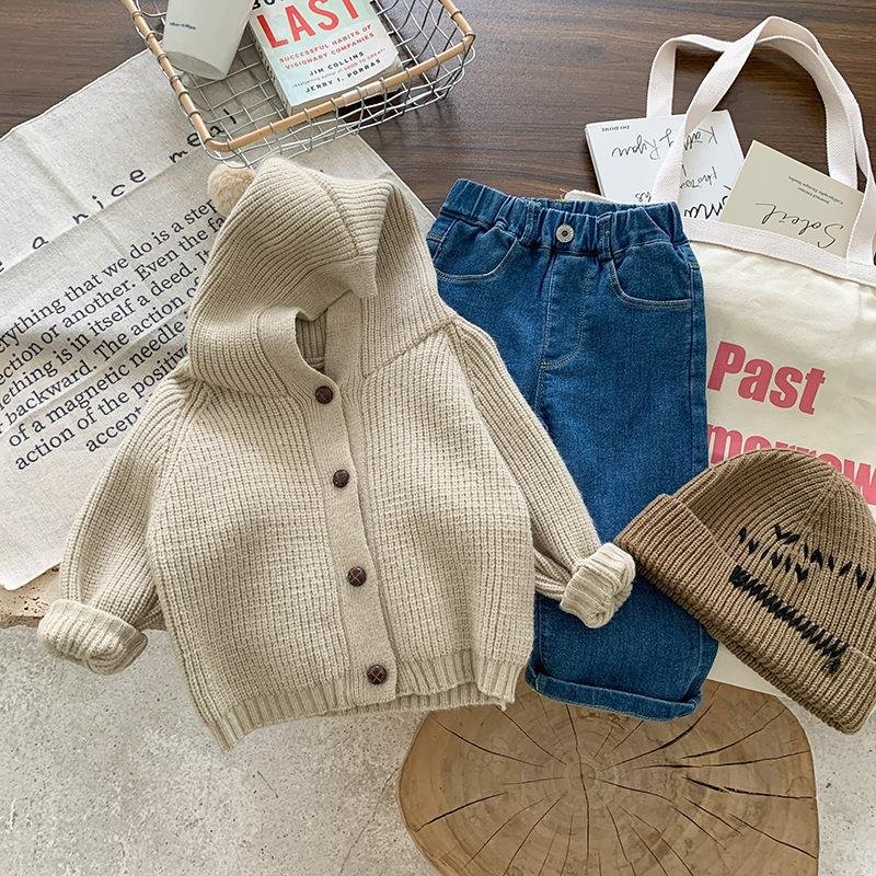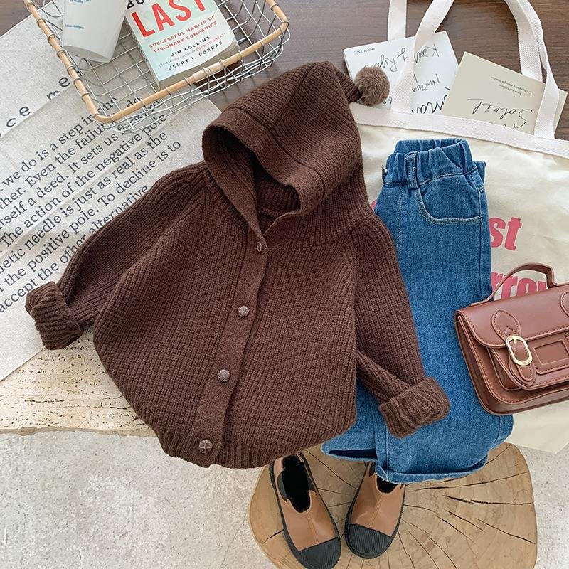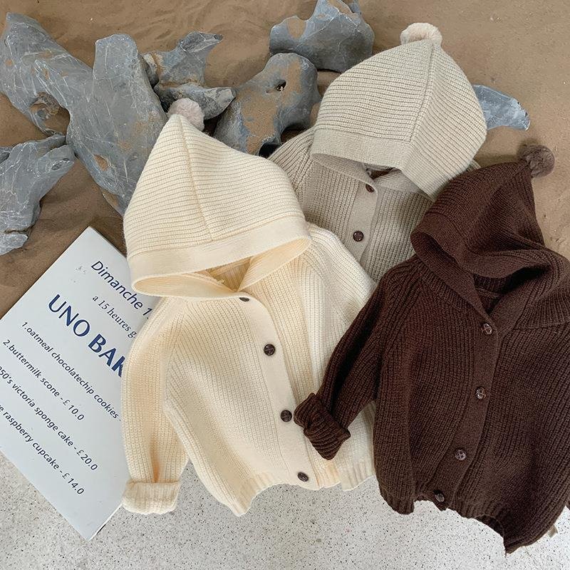Toddlers Newborn Baby Fashion Girls Boys Long Sleeve Hooded Knitted Solid Color Cardigan Coat