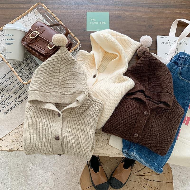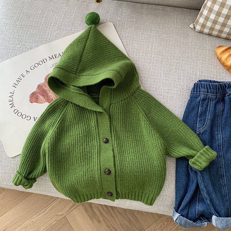 Toddlers Newborn Baby Fashion Girls Boys Long Sleeve Hooded Knitted Solid Color Cardigan Coat