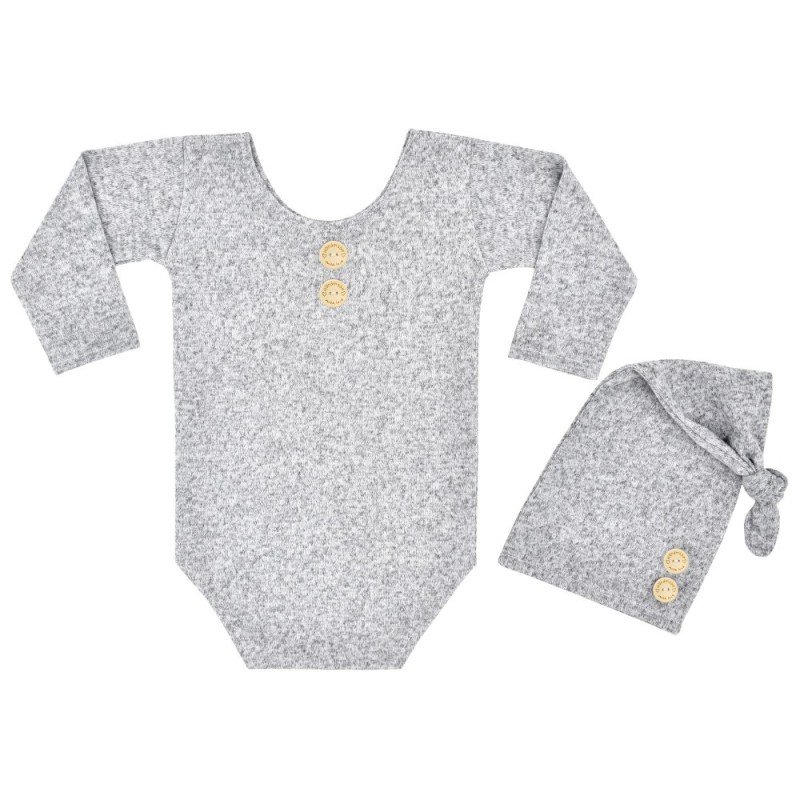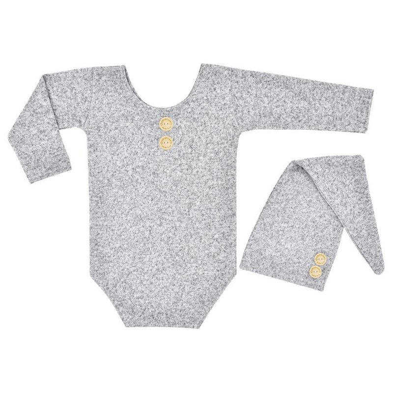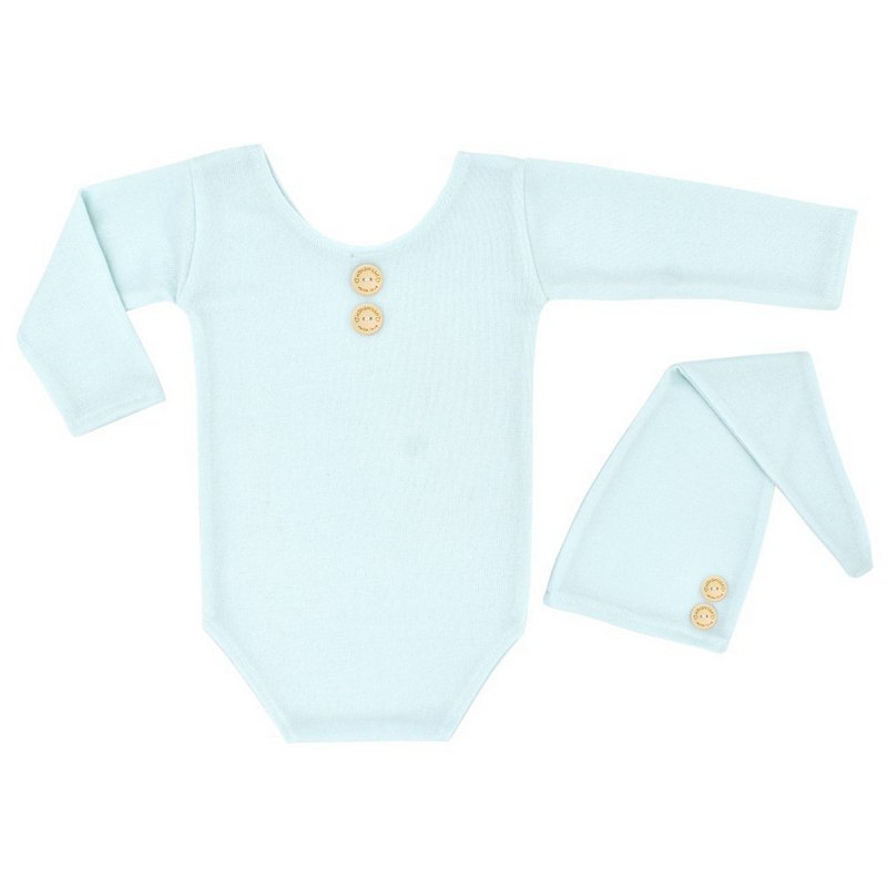 Toddlers Newborn Baby Fashion Girls Boys Photography Long Sleeve Solid Color Bodysuit And Hat 2pcs Set