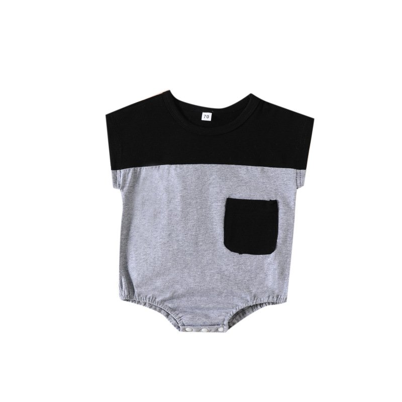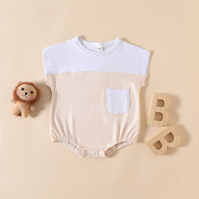 Toddlers Newborn Baby Fashion Girls Boys Short Sleeve Color Matching Pocket Bodysuit