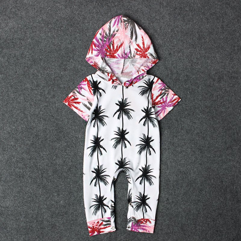 Toddlers Newborn Baby Fashion Girls Boys Short-Sleeved Hooded Leaves Jumpsuit