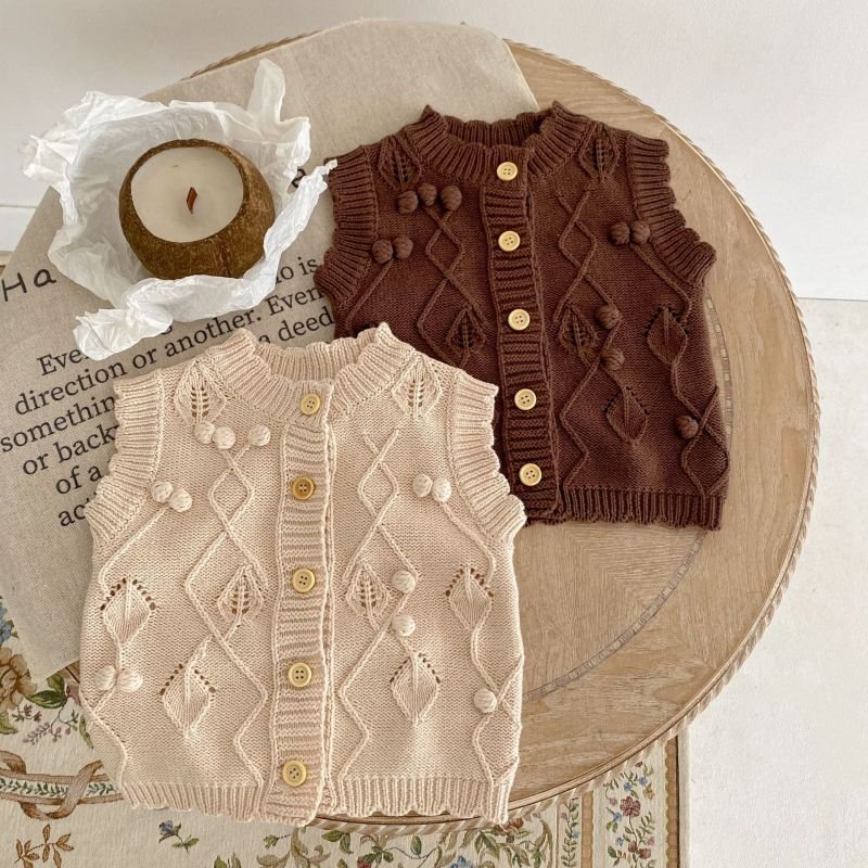 Toddlers Newborn Baby Fashion Girls Boys Sleeveless Solid Color Knitted Cardigan Coat Sweater