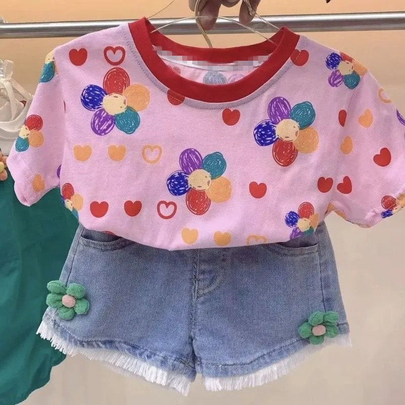 Toddlers Newborn Baby Fashion Girls Casual Basic Flower Print Short Sleeve T-Shirt