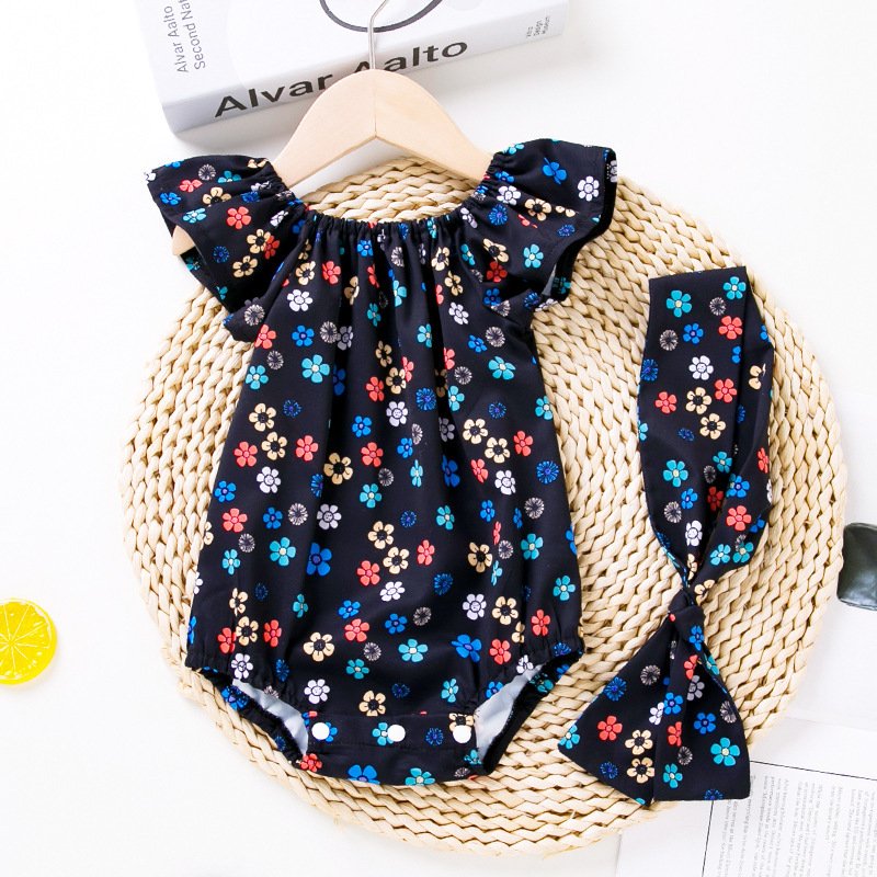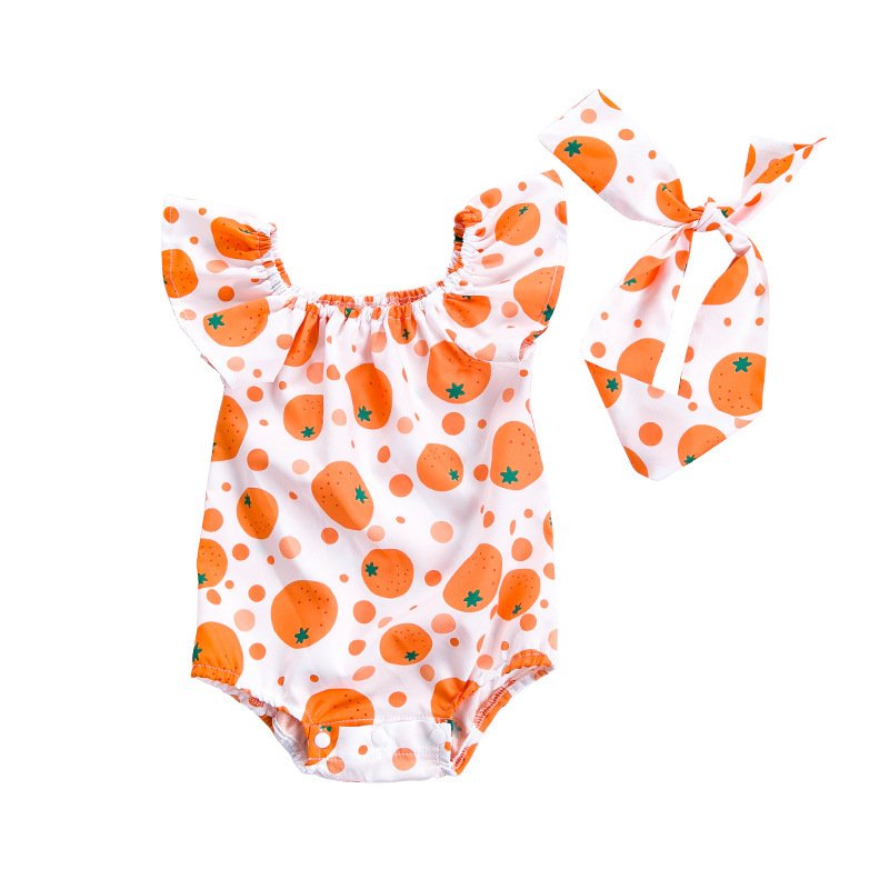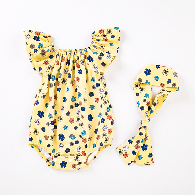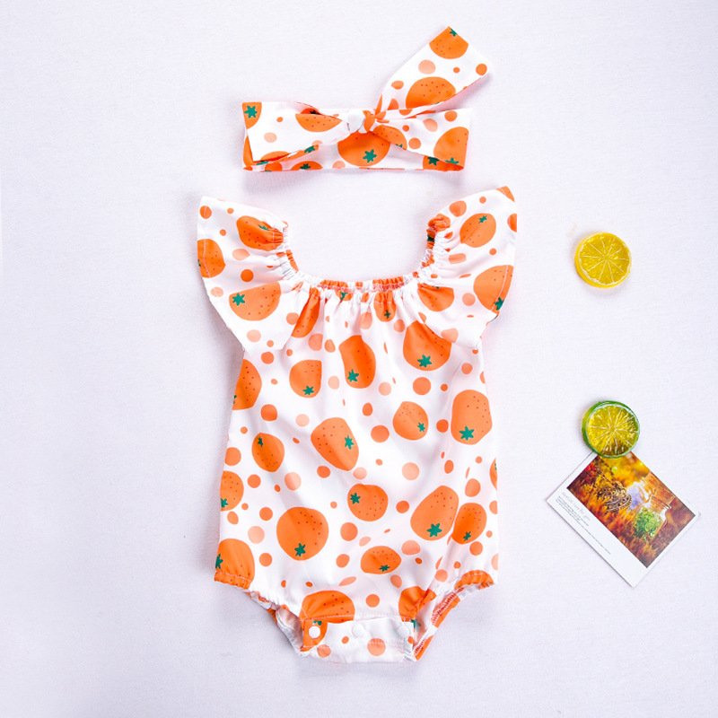 Toddlers Newborn Baby Fashion Girls Casual Basic Ruffle Sleeve Cute Print Bodysuit And Headband