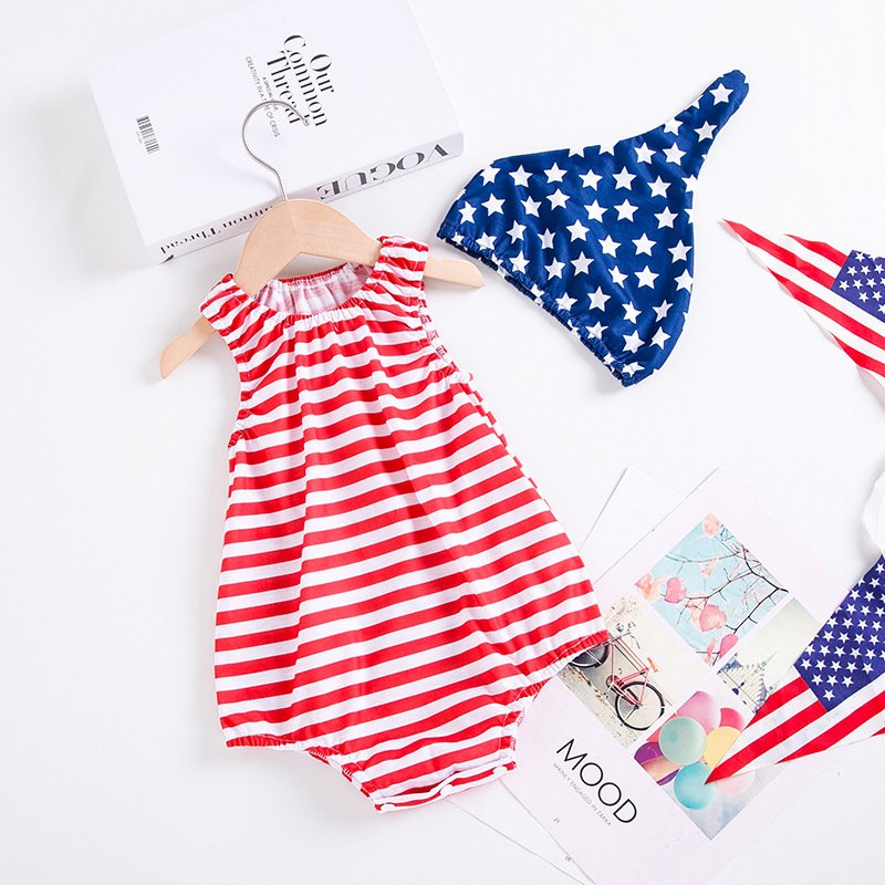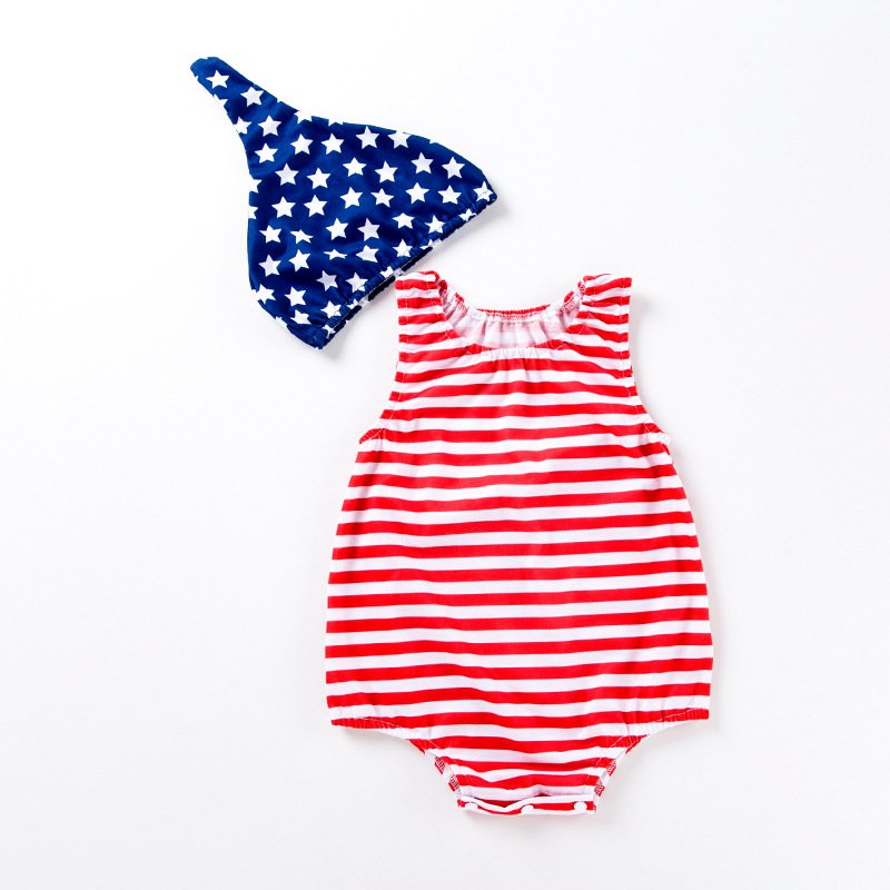 Toddlers Newborn Baby Fashion Girls Casual Basic Sleeveless Independence Day Stripe Bodysuit And Hat