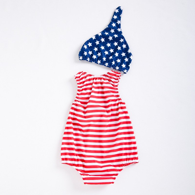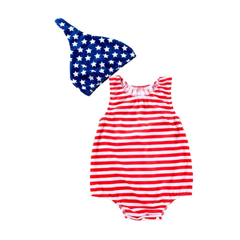 Toddlers Newborn Baby Fashion Girls Casual Basic Sleeveless Independence Day Stripe Bodysuit And Hat