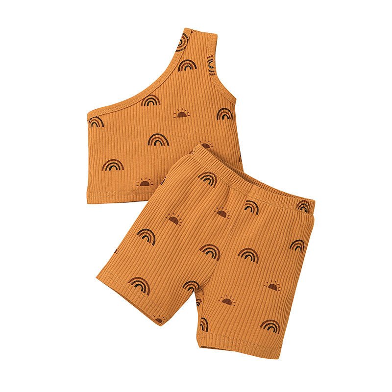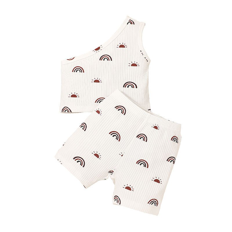 Toddlers Newborn Baby Fashion Girls Casual Basic Sleeveless Rainbow Print Top And Shorts Set