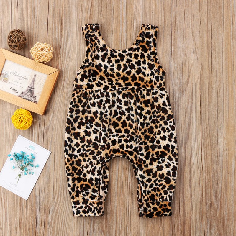 Toddlers Newborn Baby Fashion Girls Casual Basics Sleeveless Leopard Print Jumpsuit