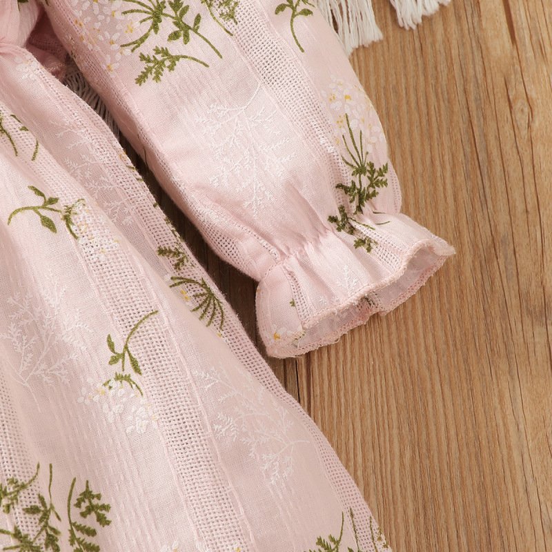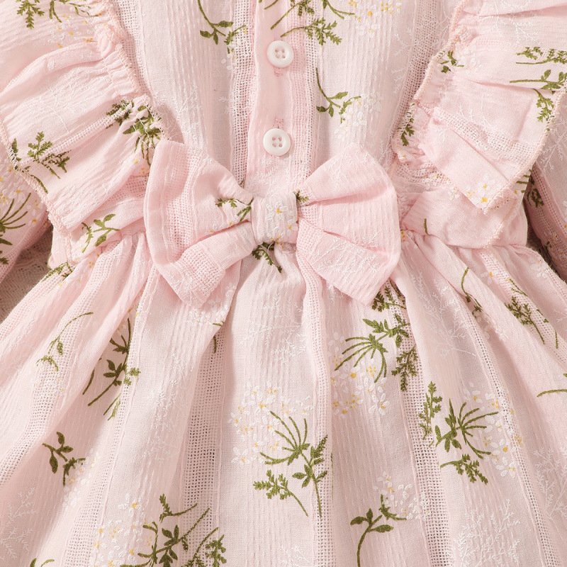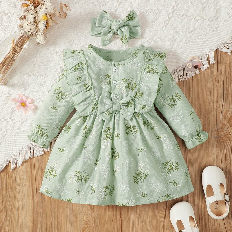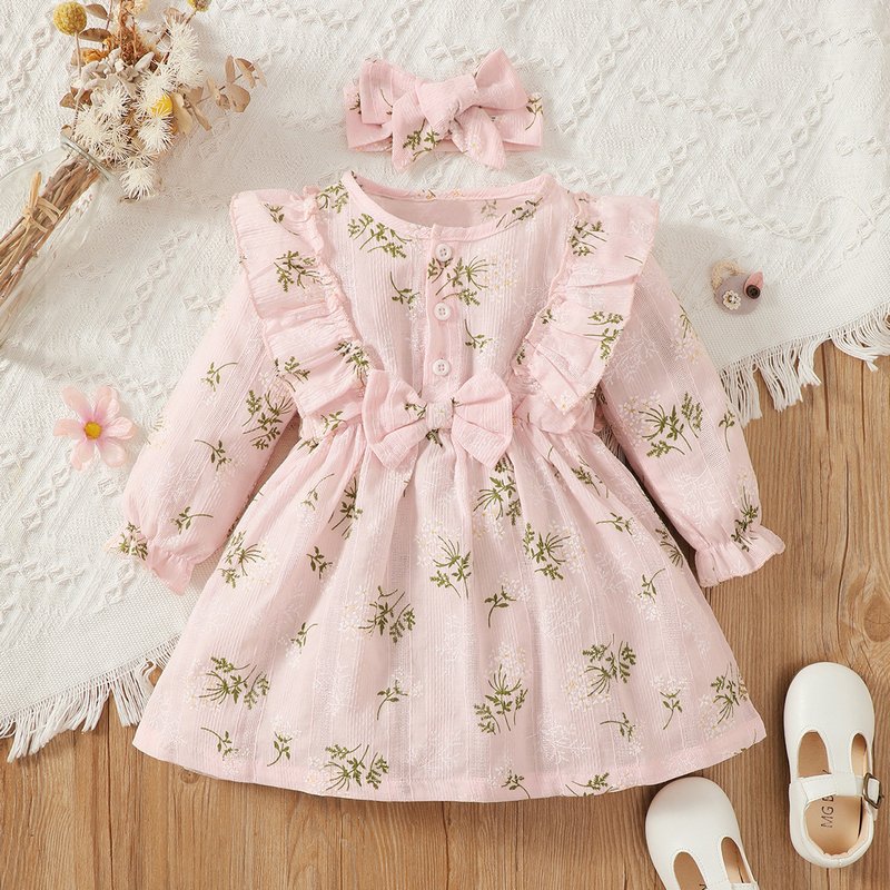 Toddlers Newborn Baby Fashion Girls Flower Print Long Sleeve Princess Dress And Headband 2pcs Set