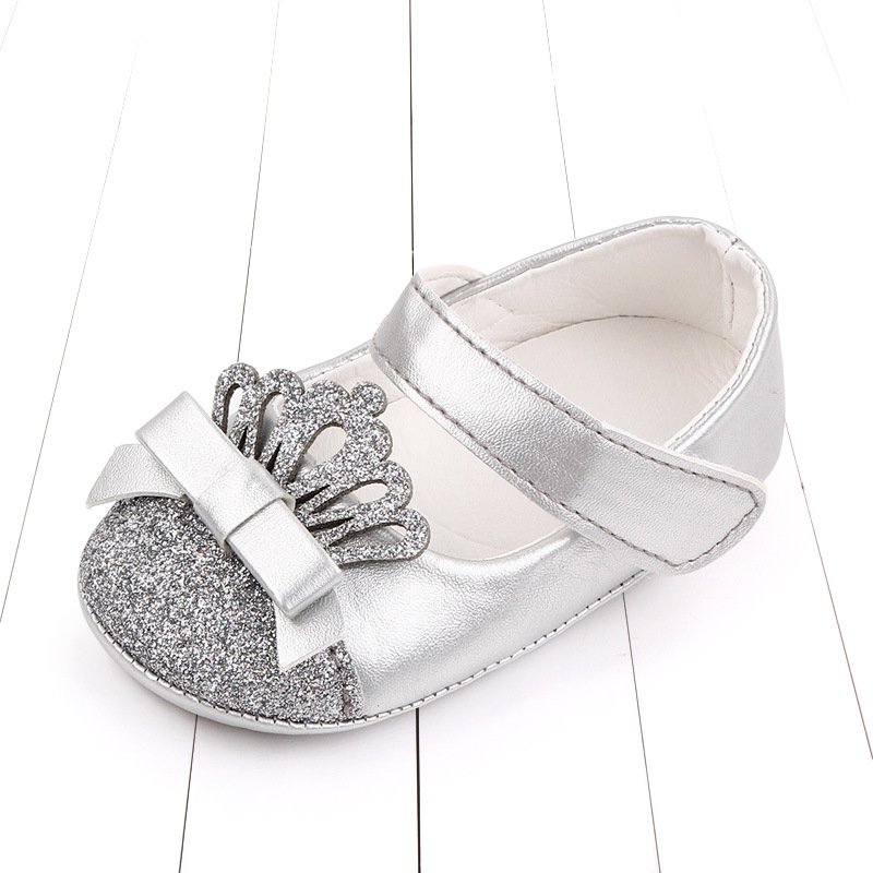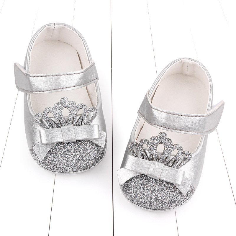 Toddlers Newborn Baby Fashion Girls Glitter Crown Soft Bottom Princess Shoes
