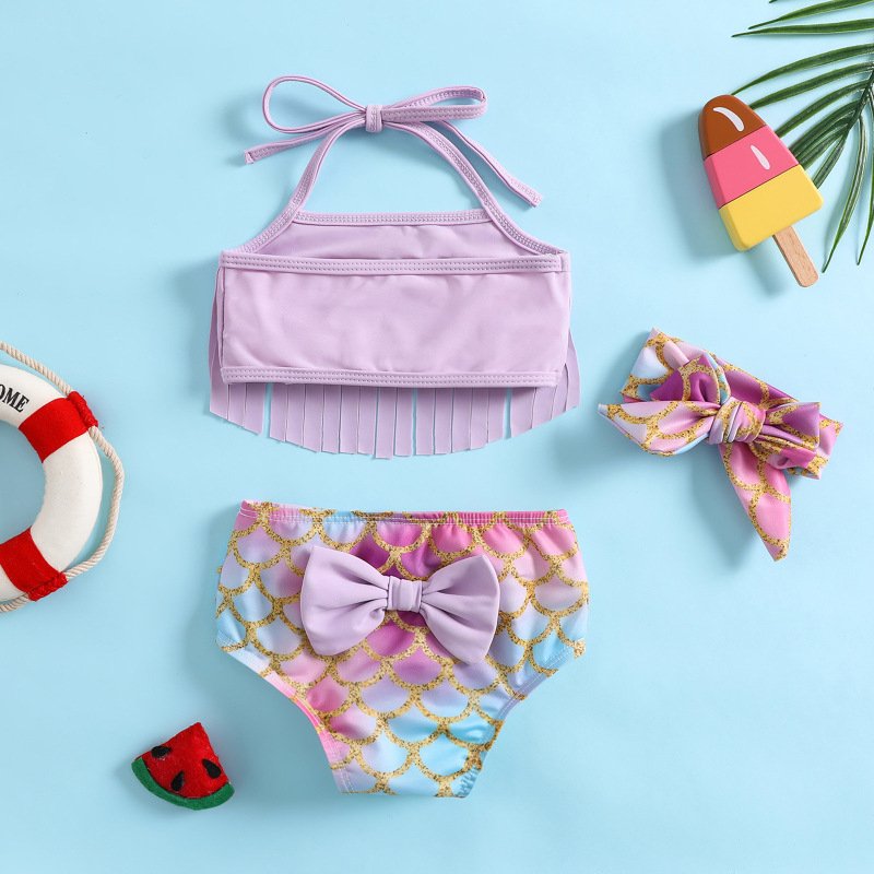 Toddlers Newborn Baby Fashion Girls Mermaid Tassel Swimsuit 2pcs Set
