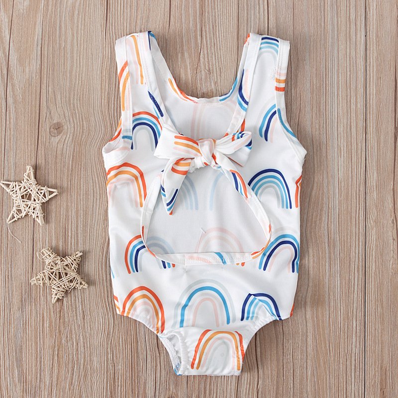 Toddlers Newborn Baby Fashion Girls Rainbow Pattern Backless One-Piece Swimsuit