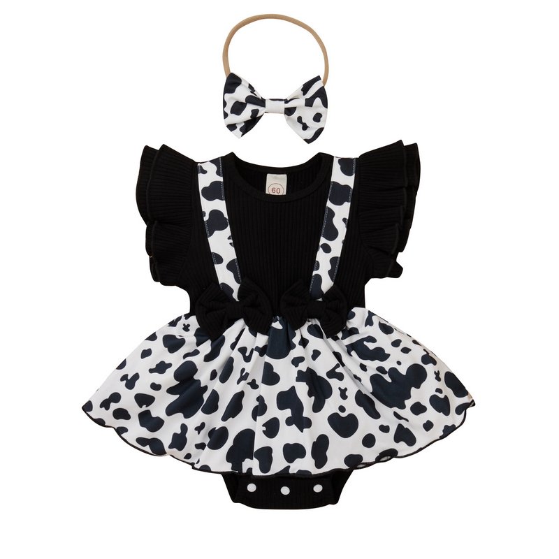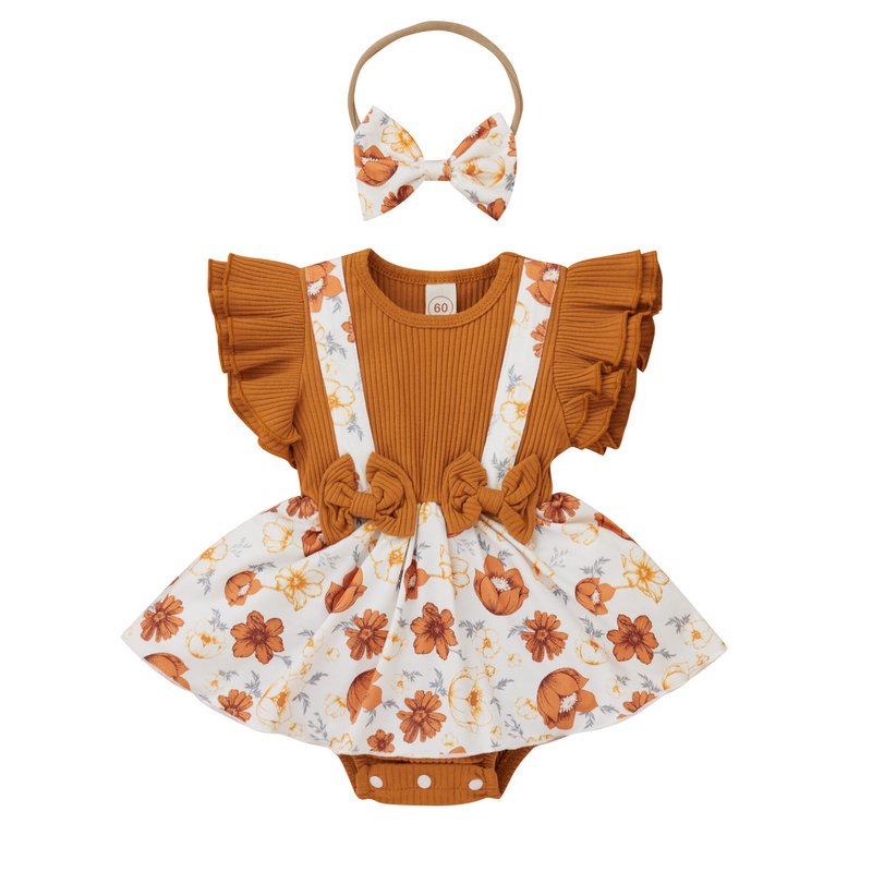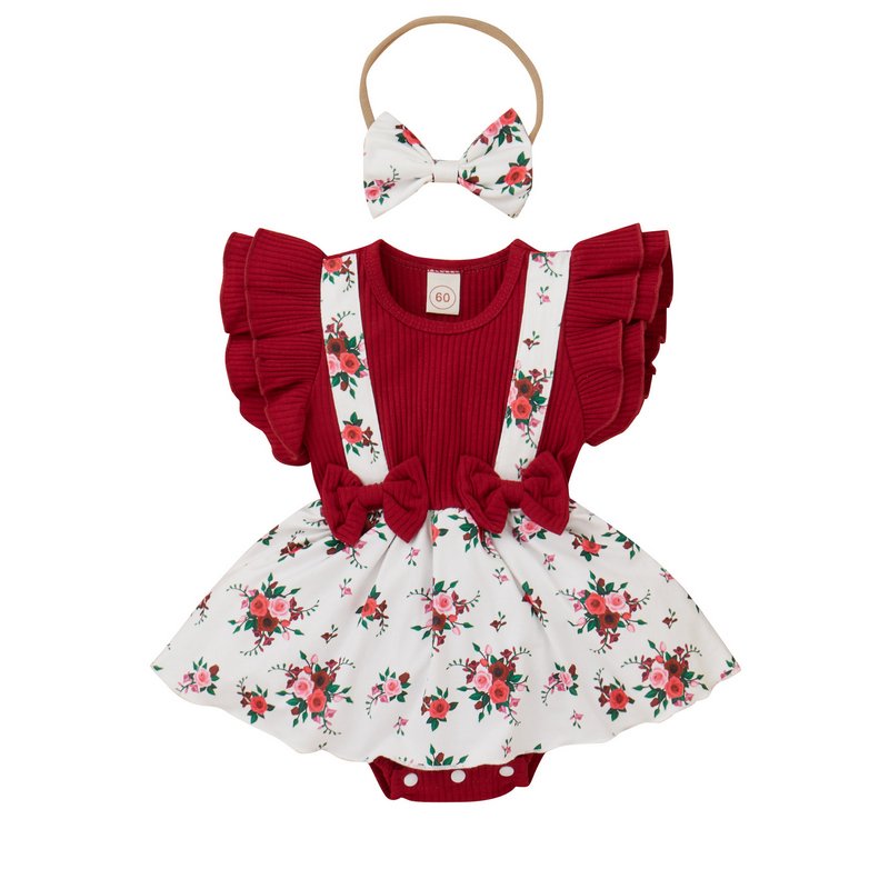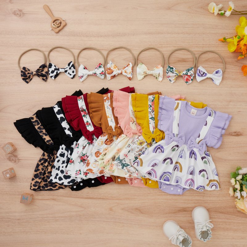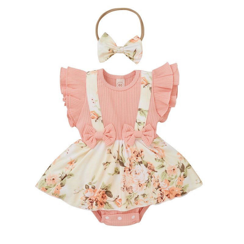 Toddlers Newborn Baby Fashion Girls Ruffle Sleeve Flower Print Patchwork Bodysuit