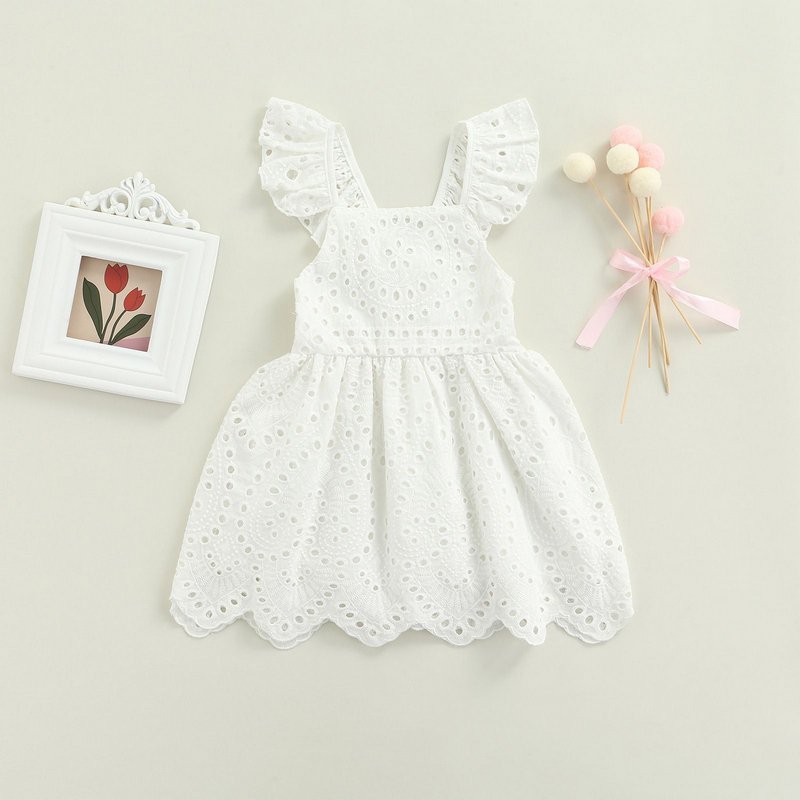Toddlers Newborn Baby Fashion Girls Ruffle Sleeve Solid Color Lace Dress