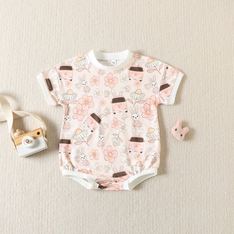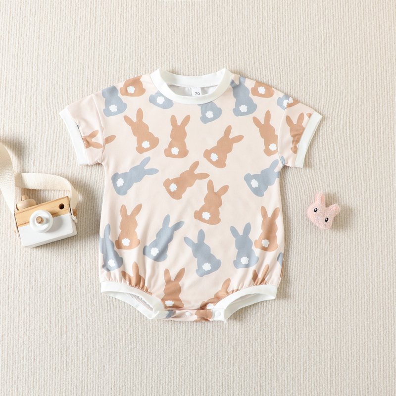 Toddlers Newborn Baby Fashion Girls Short Sleeve Cartoon Bunny Print Bodysuit