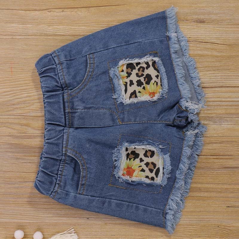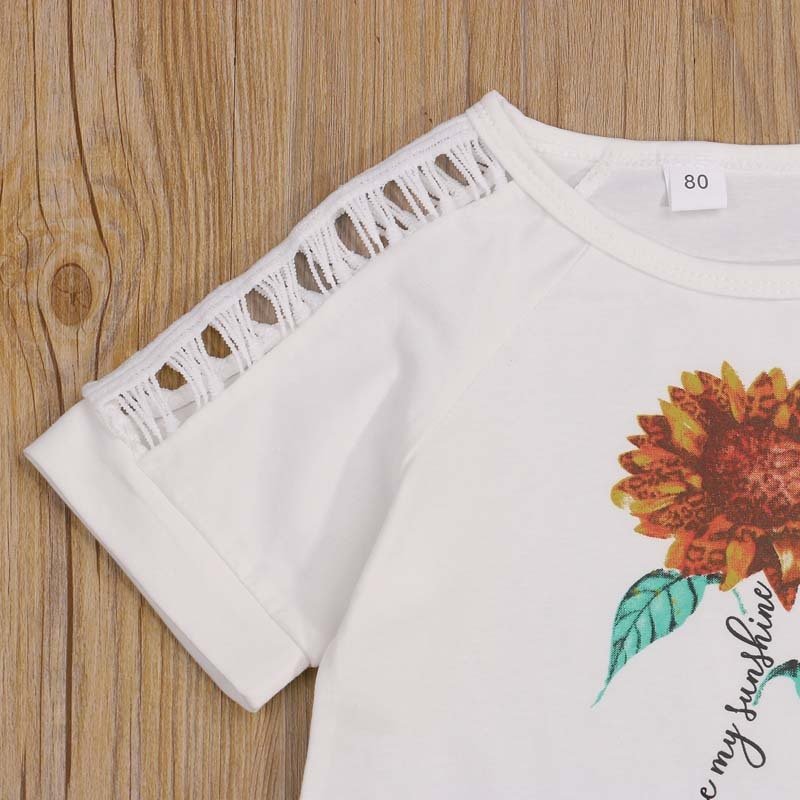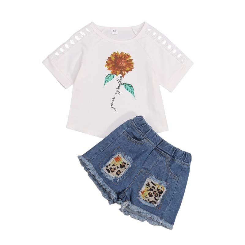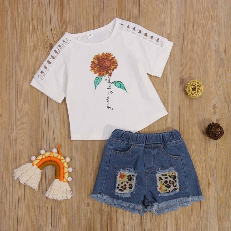 Toddlers Newborn Baby Fashion Girls Short Sleeve Sunflower T-Shirt And Denim Shorts 2pcs Set