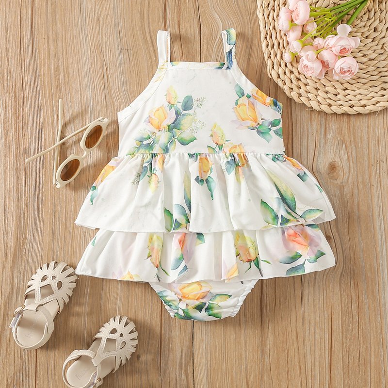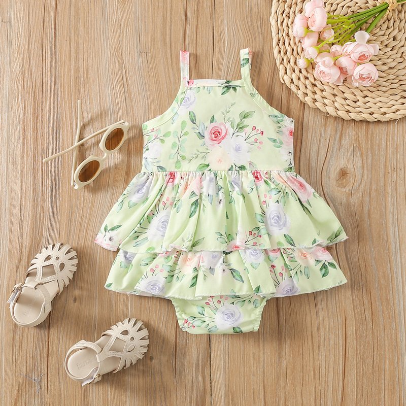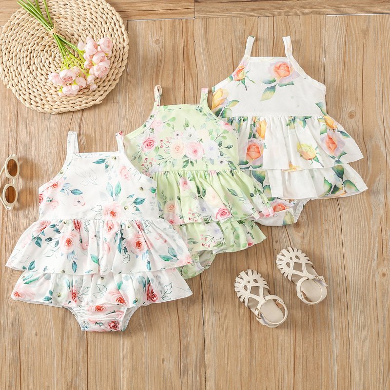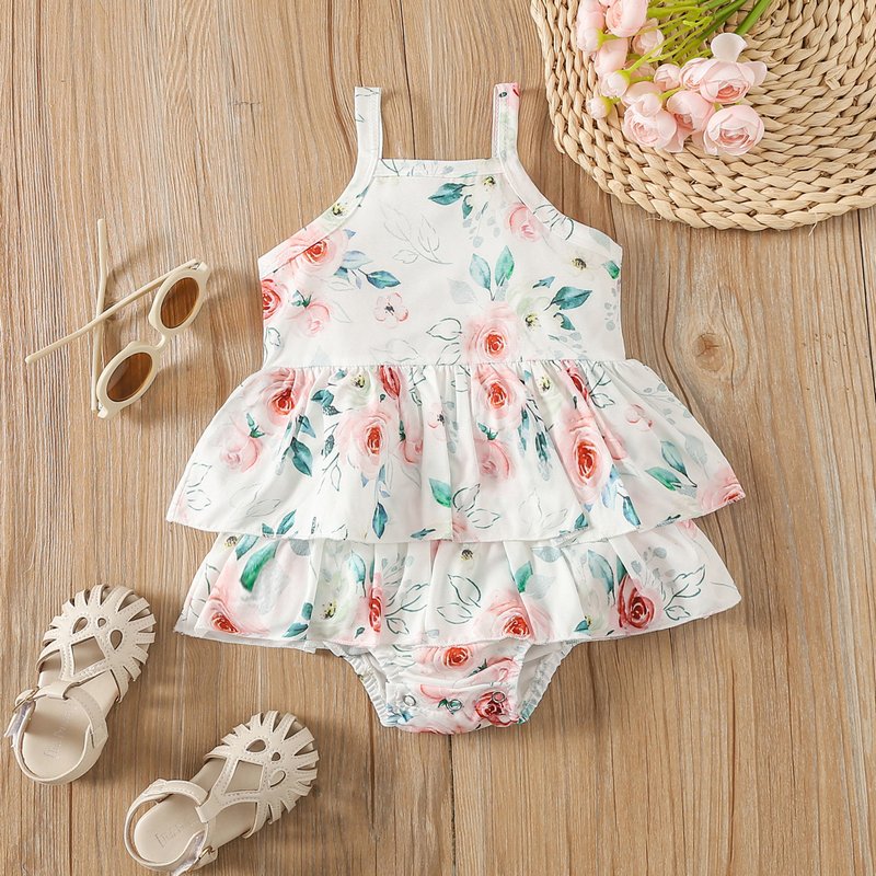 Toddlers Newborn Baby Fashion Girls Sleeveless Sling Flower Print Bodysuit