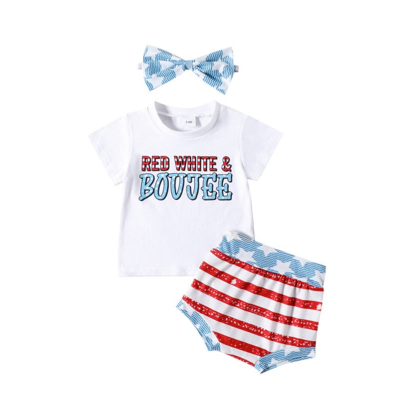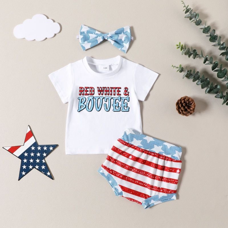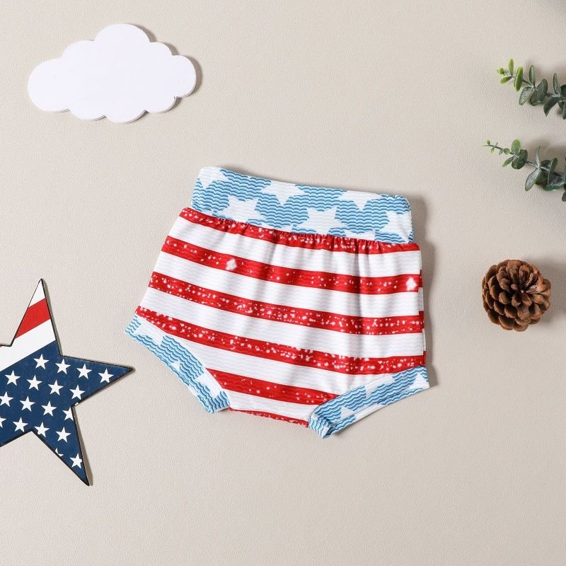 Toddlers Newborn Baby Fashion Independence Day Flag Girls Short Sleeve Print T-Shirt And Shorts Set