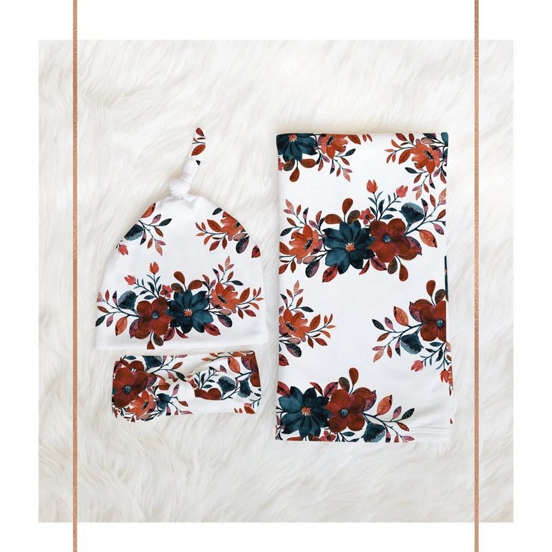 Toddlers Newborn Baby Fashion Print Swaddle Blanket Wrapping Towel And Headband Hat 3pcs Set