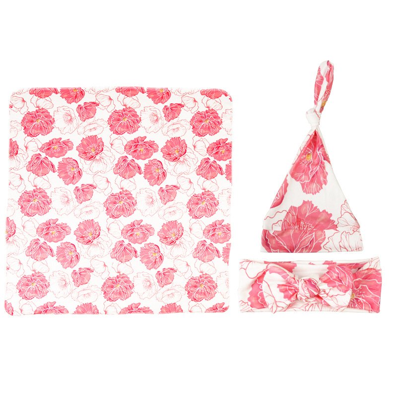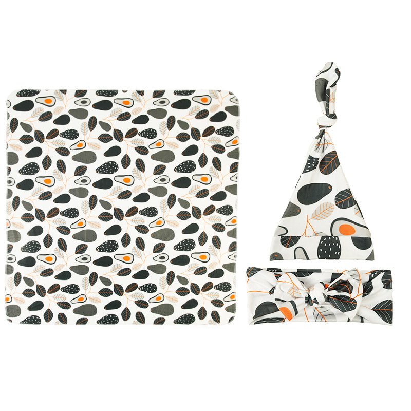 Toddlers Newborn Baby Fashion Print Swaddle Blanket Wrapping Towel And Headband Hat 3pcs Set