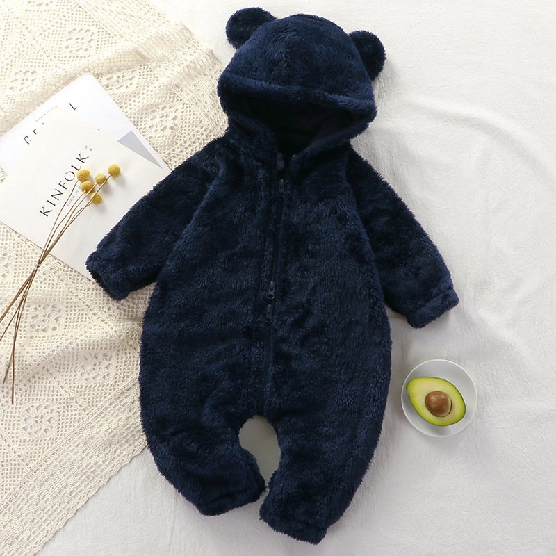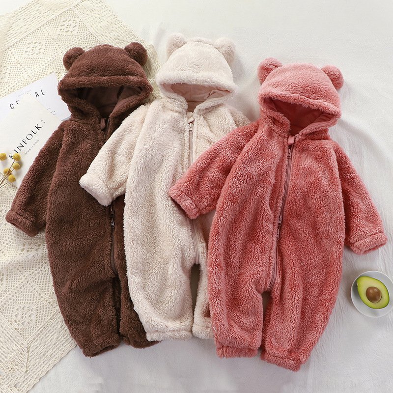 Toddlers Newborn Baby Girls Boys Long Sleeve Plush Hoodies Zipper Jumpsuit