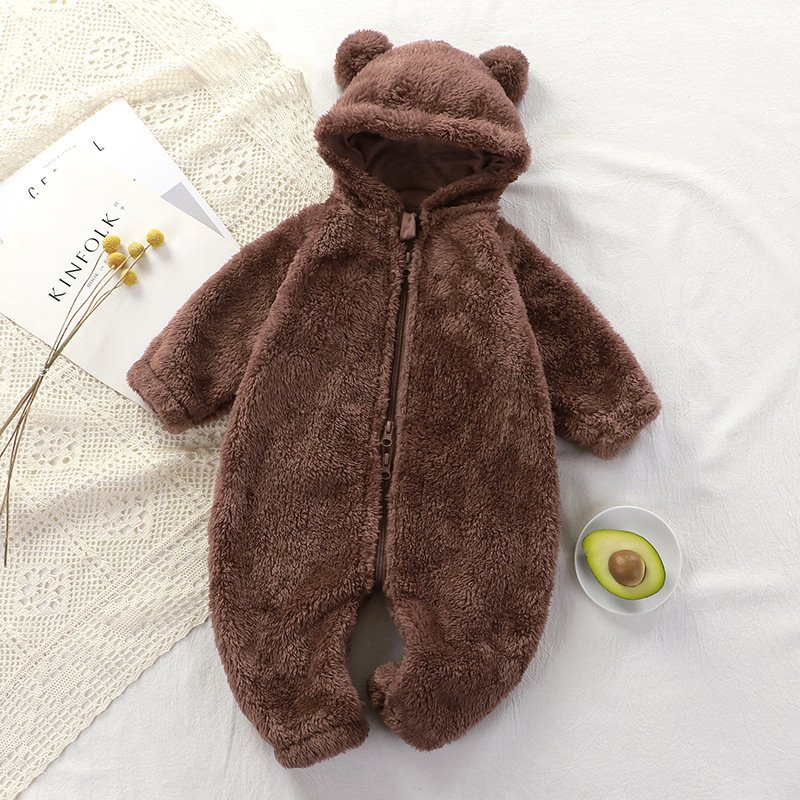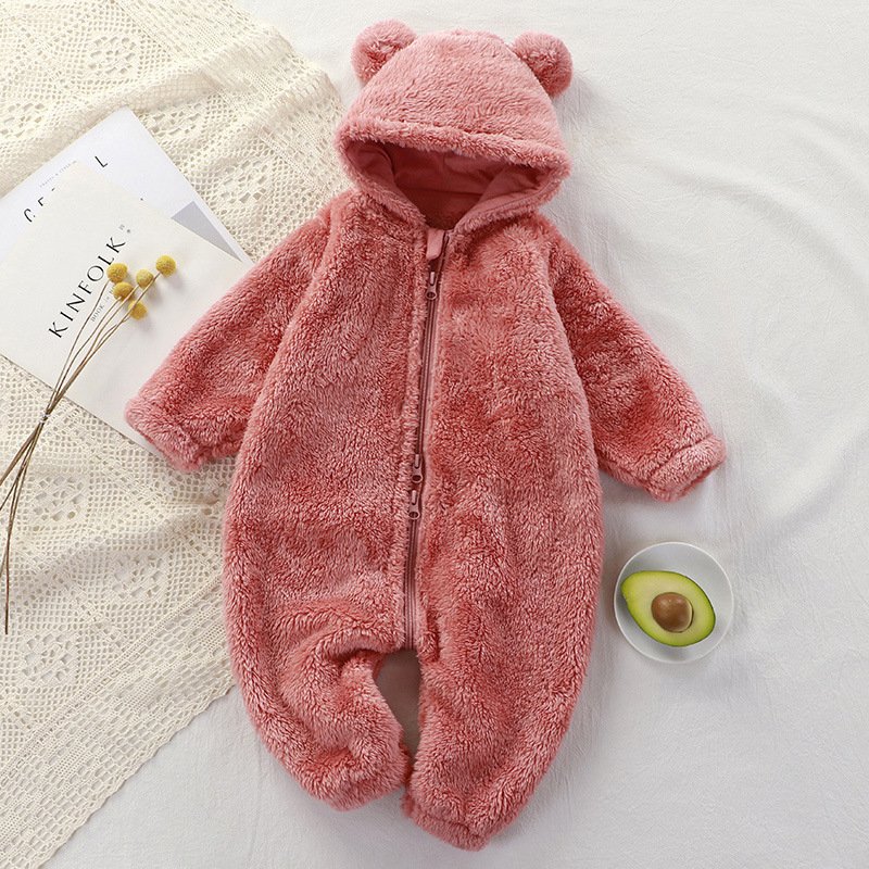 Toddlers Newborn Baby Girls Boys Long Sleeve Plush Hoodies Zipper Jumpsuit