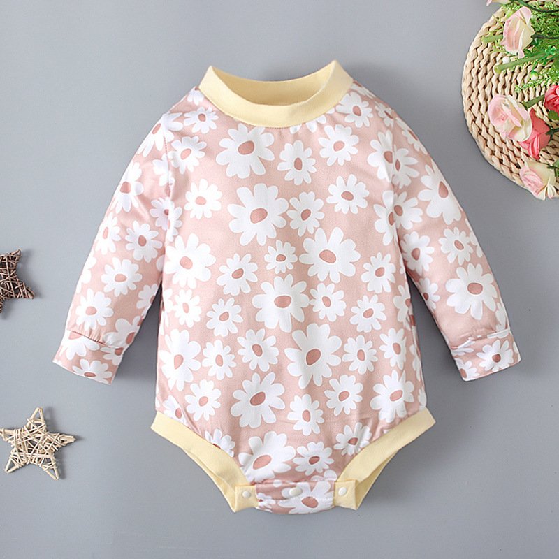 Toddlers Newborn Baby Girls Long-Sleeved Round Neck Floral Bodysuit