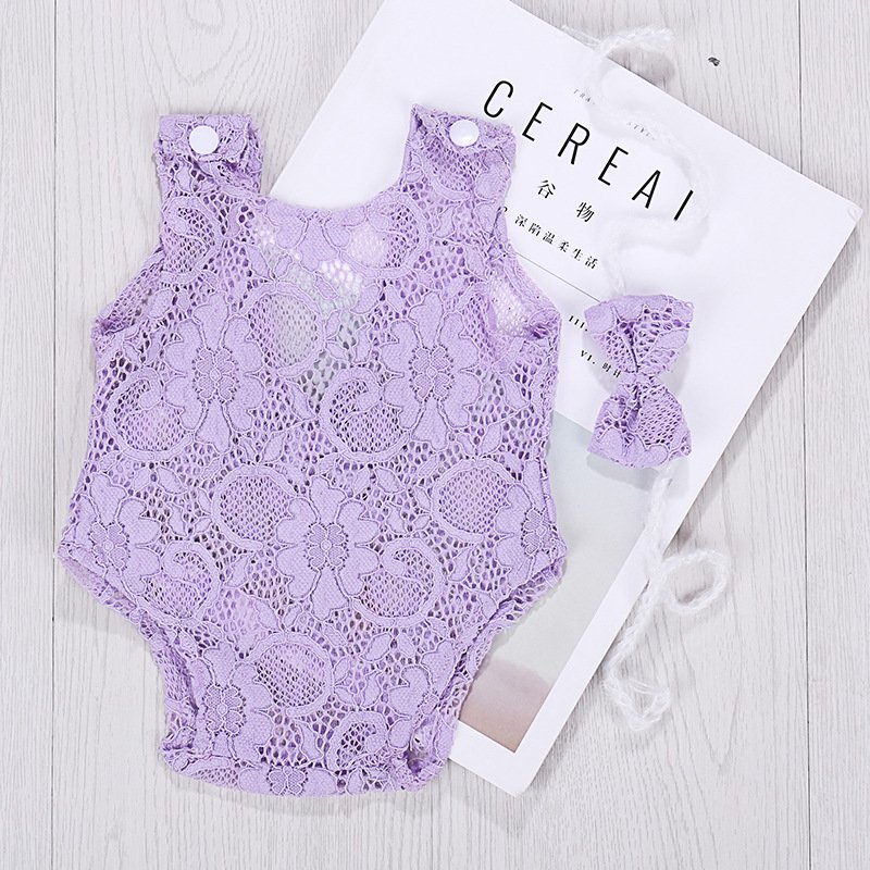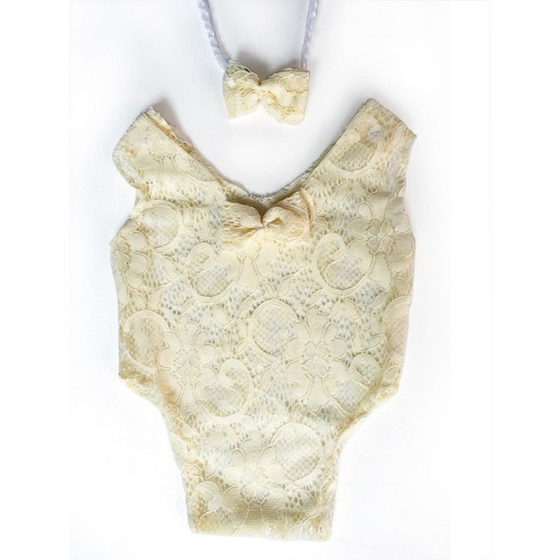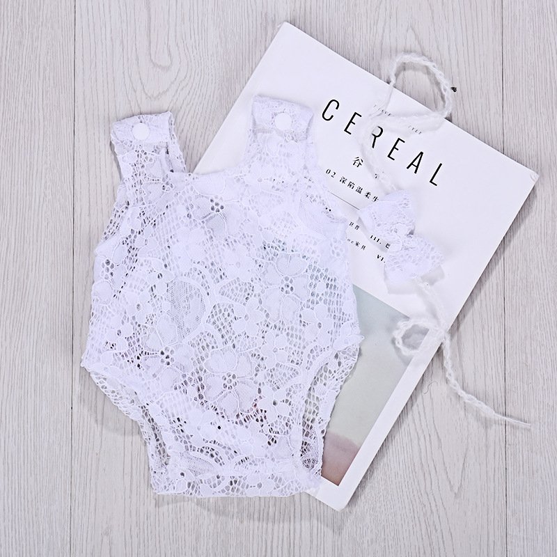 Toddlers Newborn Baby Girls Photo Props Lace Hollow Cute Bow Bodysuit