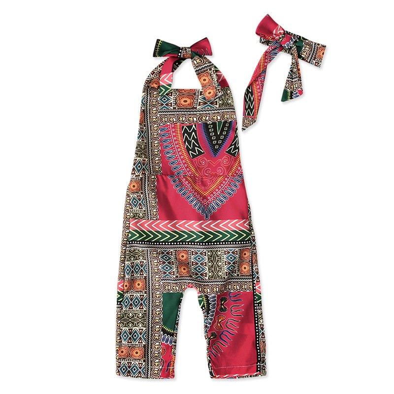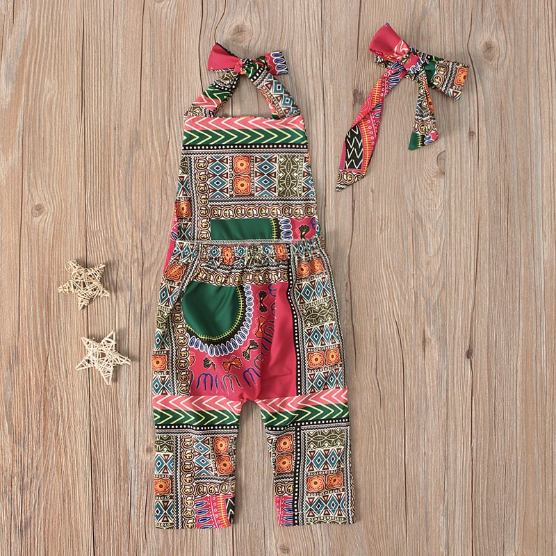 Toddlers Newborn Baby Girls Print Jumpsuit And Headband 2pcs Set