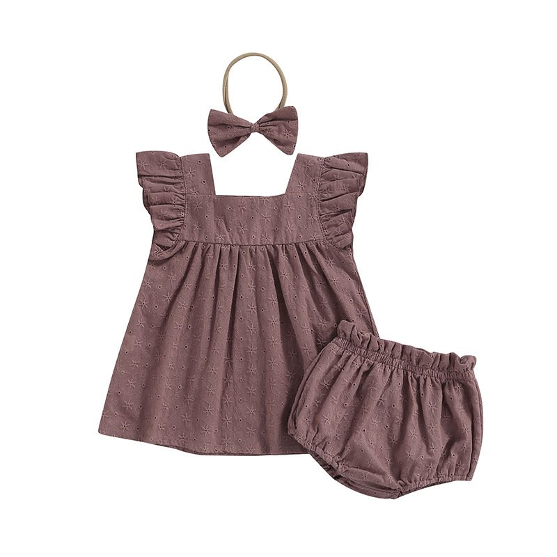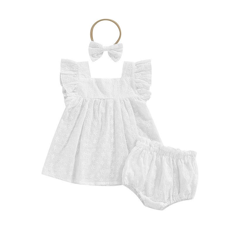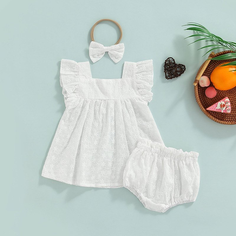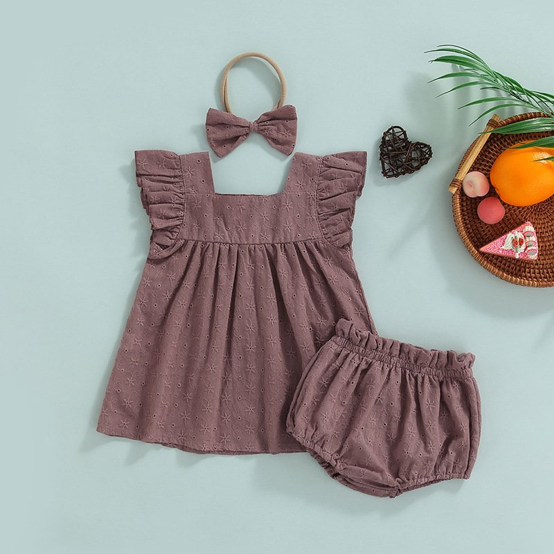 Toddlers Newborn Baby Girls Ruffle Sleeves Tops And Shorts Hairband 3pcs Set