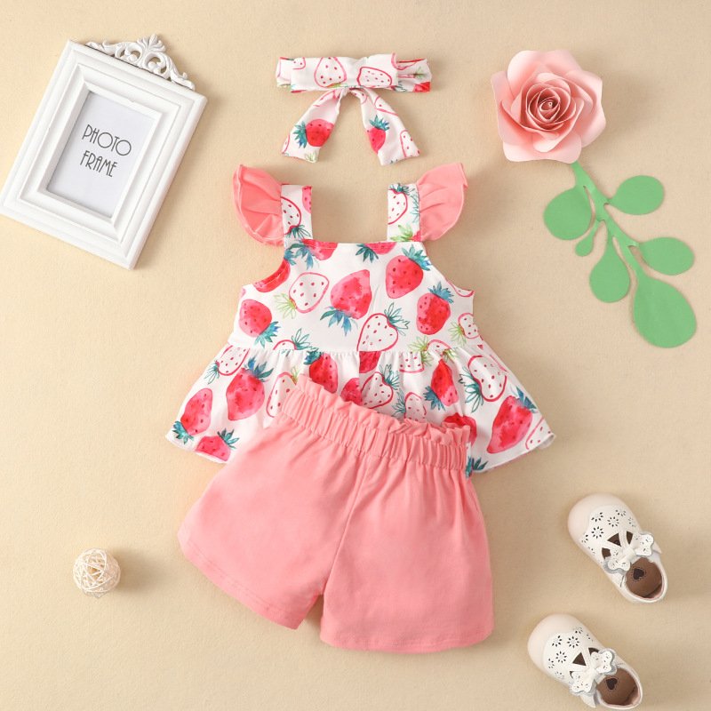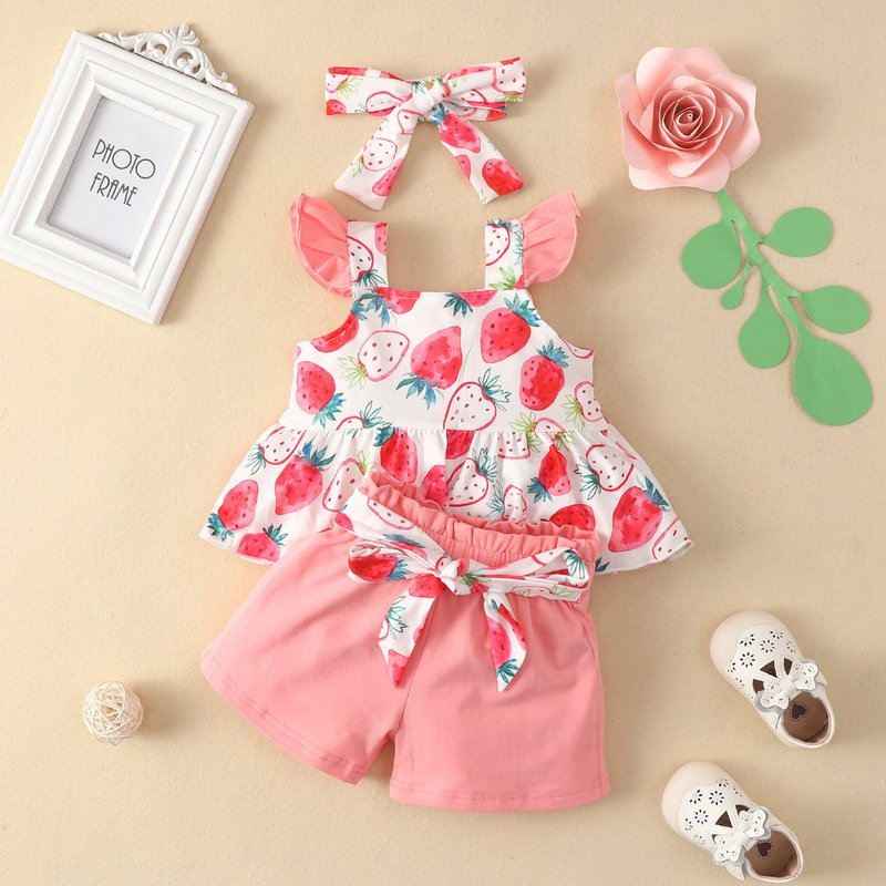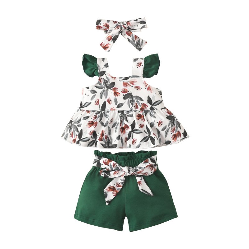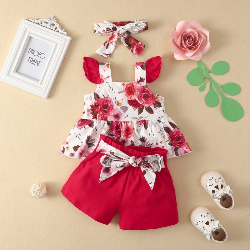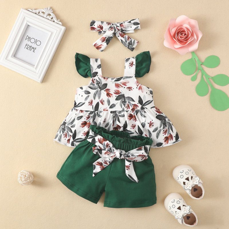 Toddlers Newborn Baby Girls Sleeveless Floral Top And Animal Suspender Shorts 2pcs Set