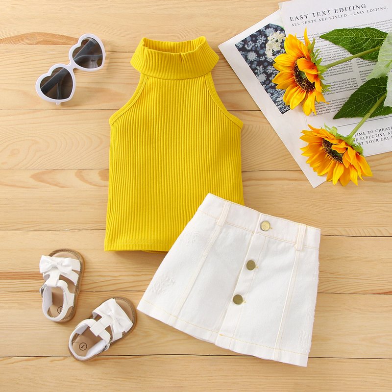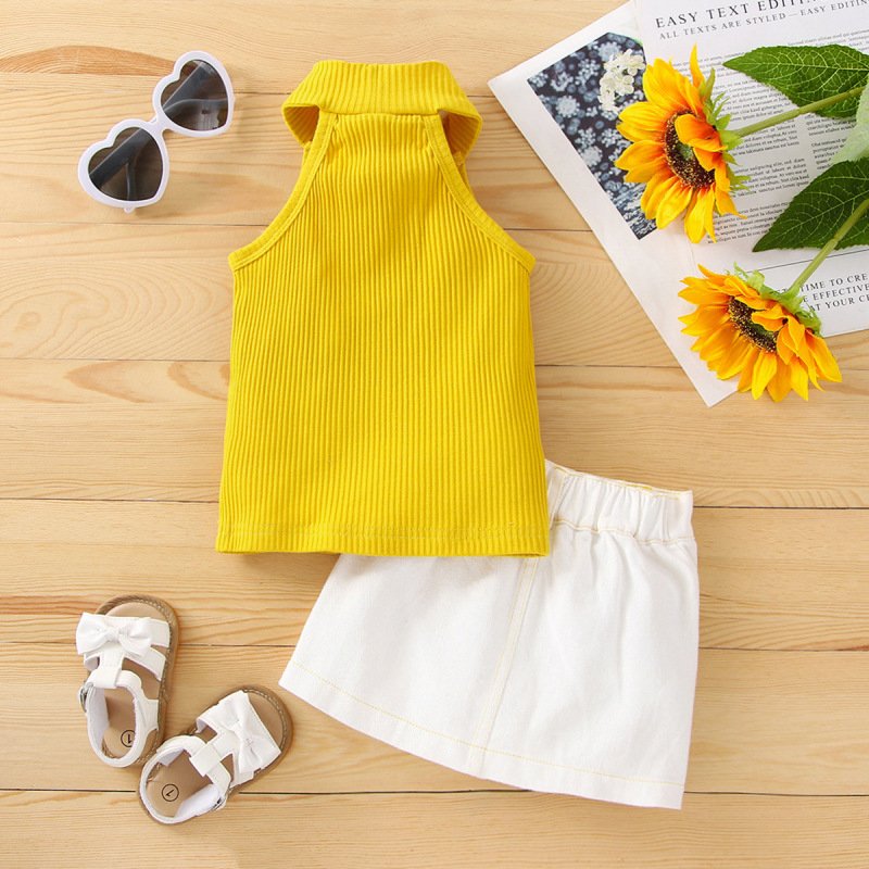 Toddlers Newborn Baby Girls Sleeveless Solid Color Top And Skirt 2pcs Set