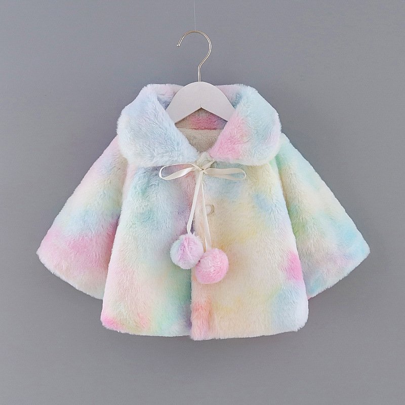 Toddlers Newborn Baby Girls Tie-Dye Multicolor Fleece Coat