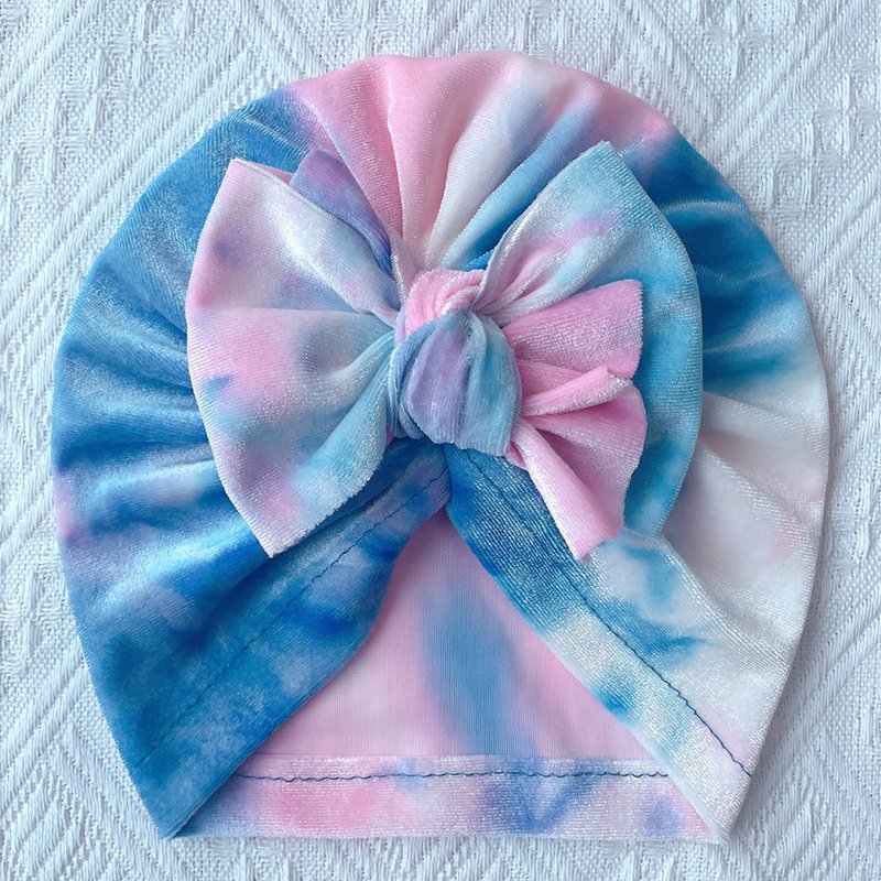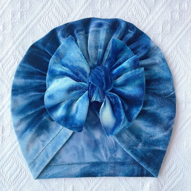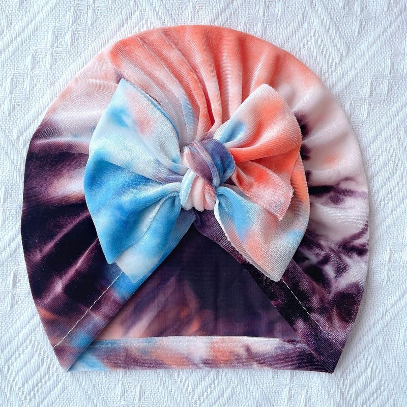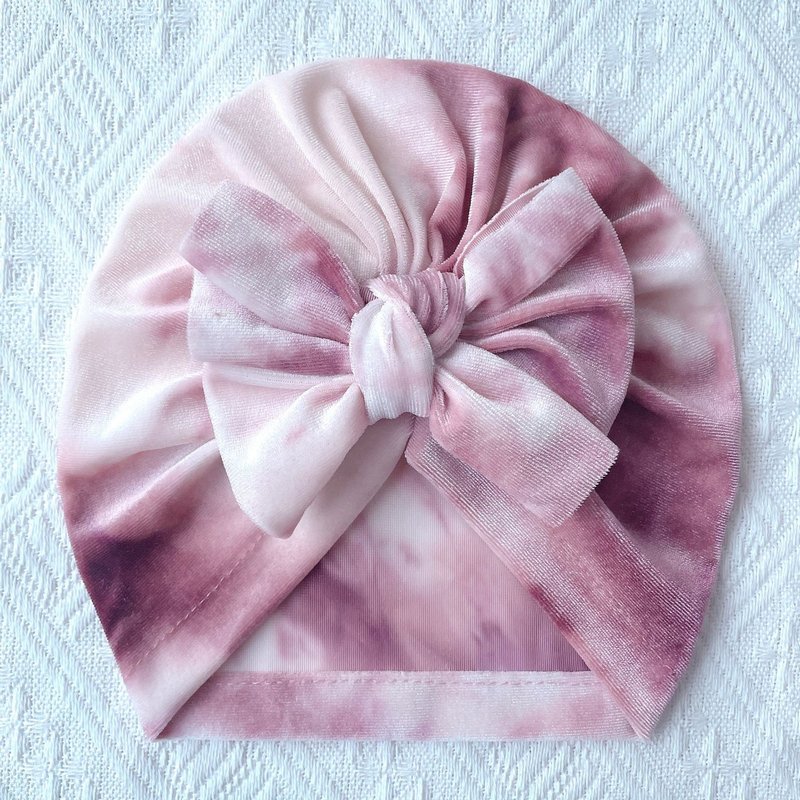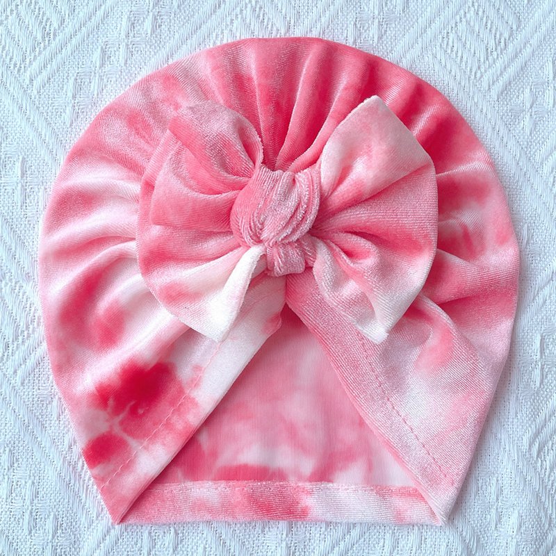 Toddlers Newborn Baby Velvet Tie-Dye Bow Turban Cap
