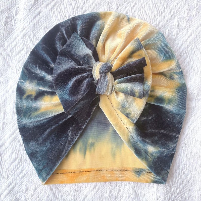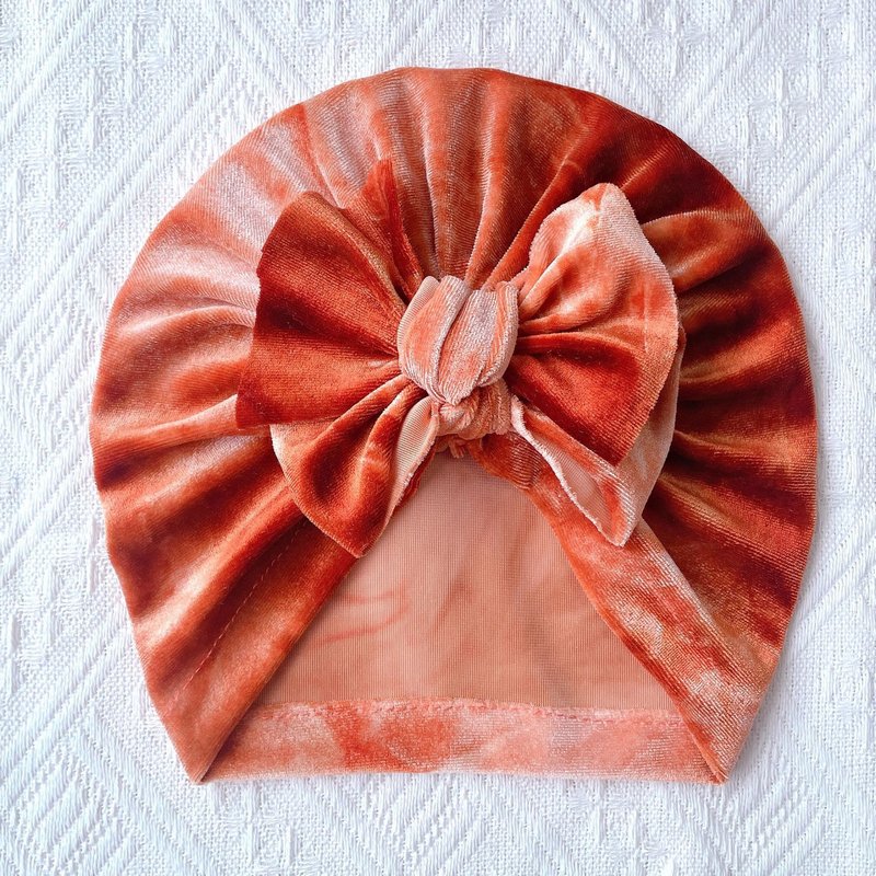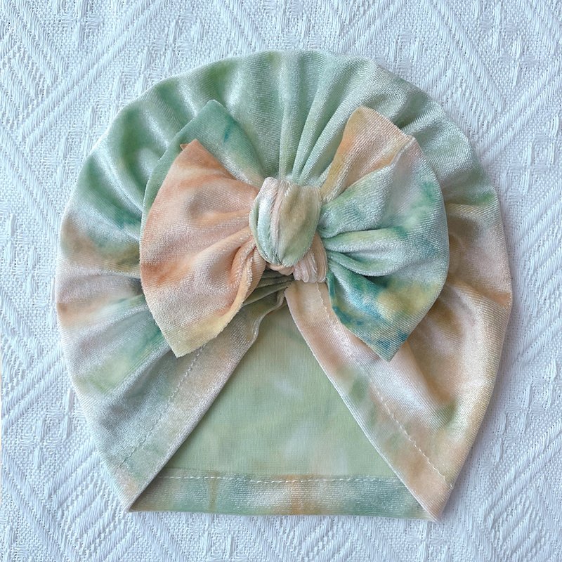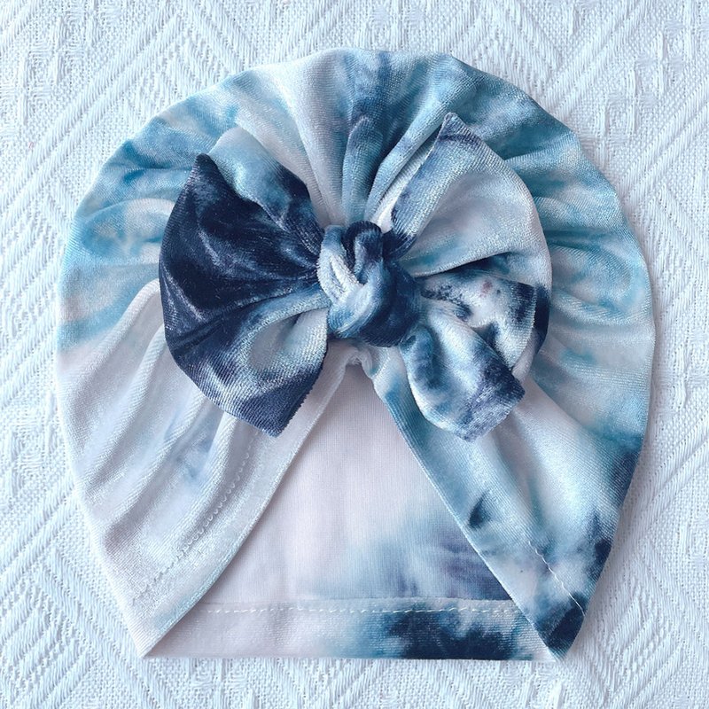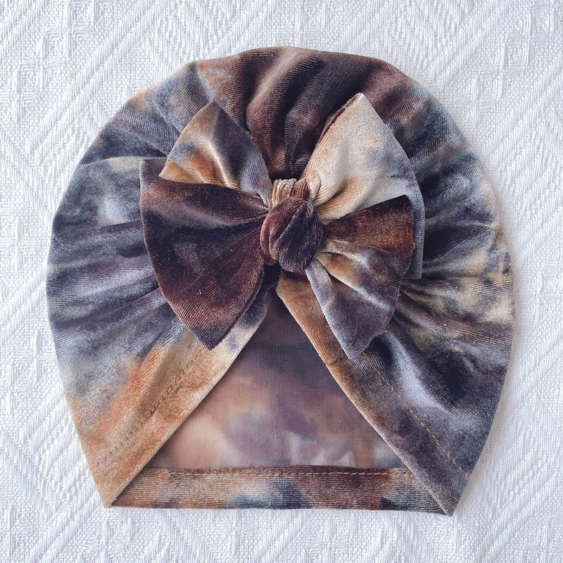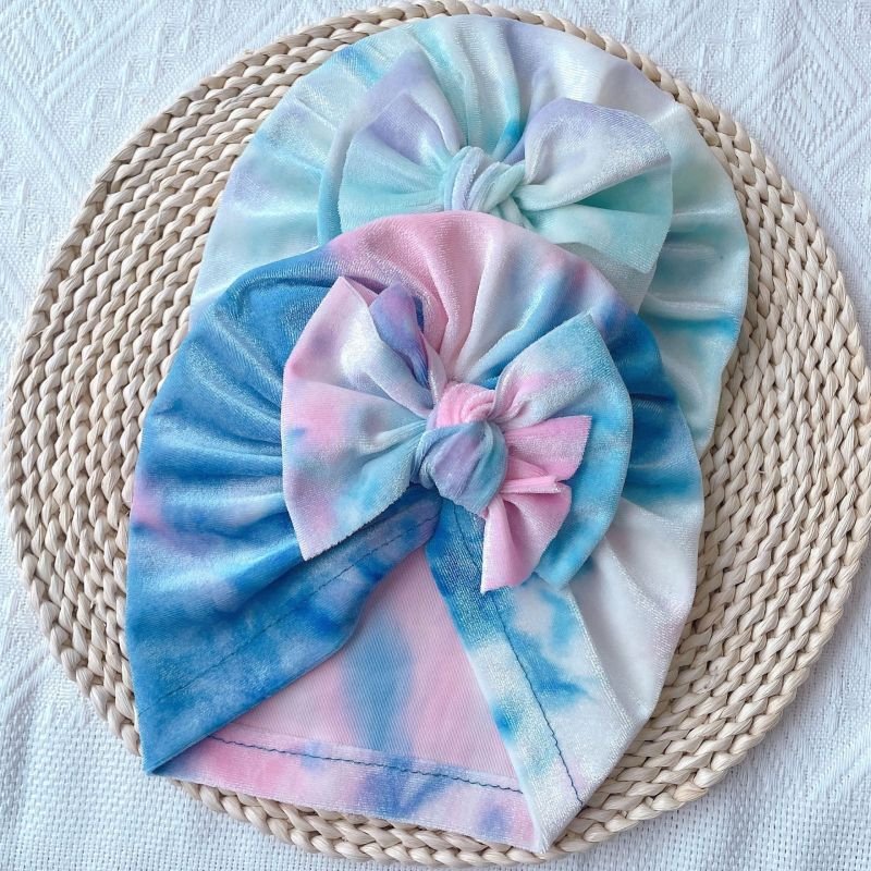 Toddlers Newborn Baby Velvet Tie-Dye Bow Turban Cap