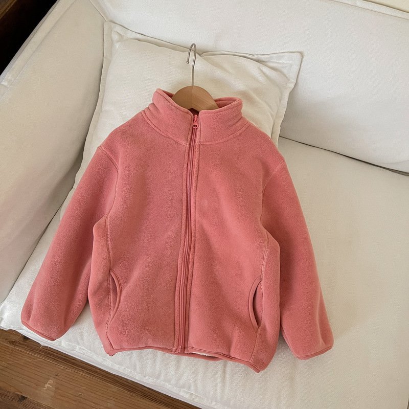 Winter Children Solid Color Fleece-Lined Warm Zipper Coat