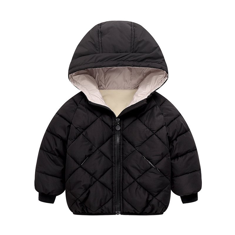 Winter Kids Rhombus Pattern Long-Sleeve Hooded Coat