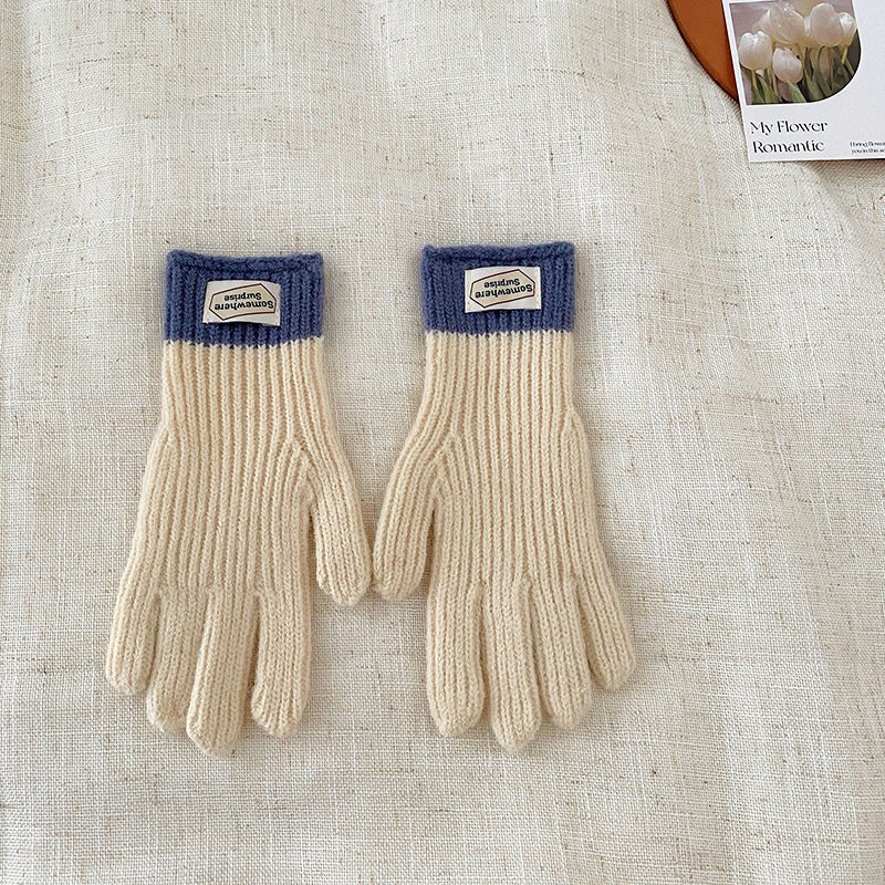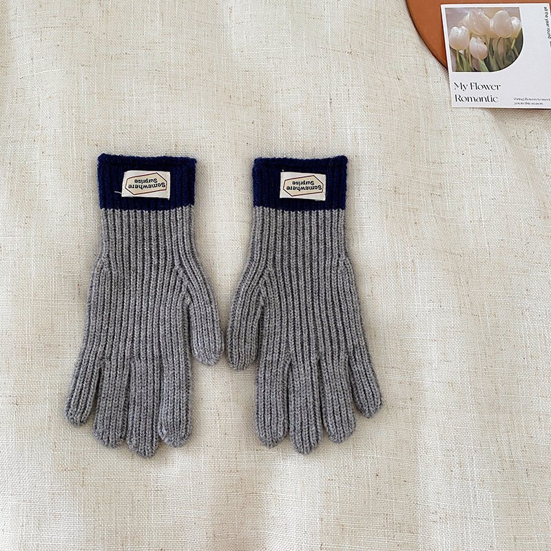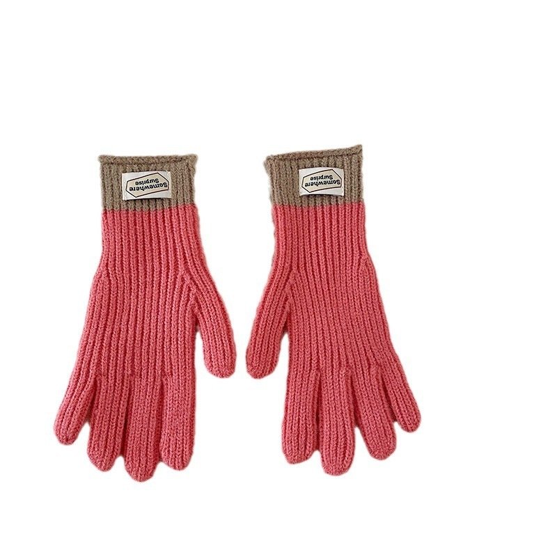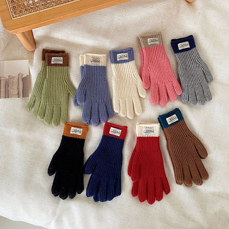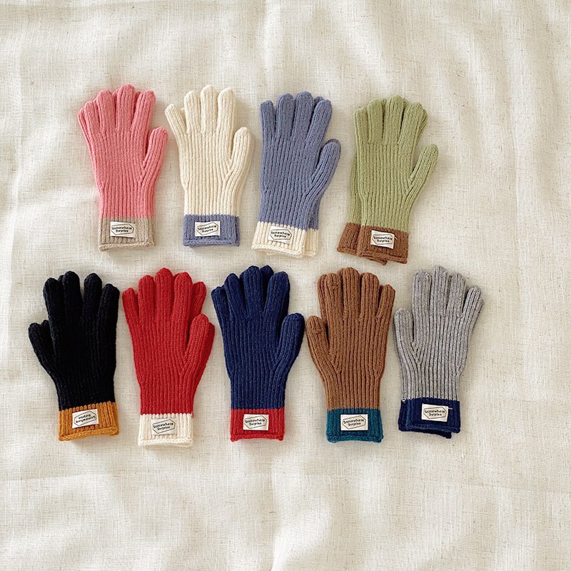 y2k Kids Unisex Autumn Winter Basic Thickening Color Knitwear Finger Gloves
