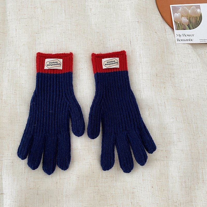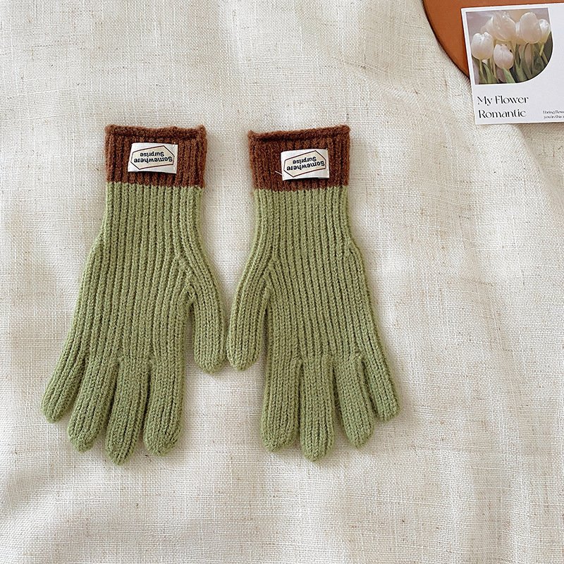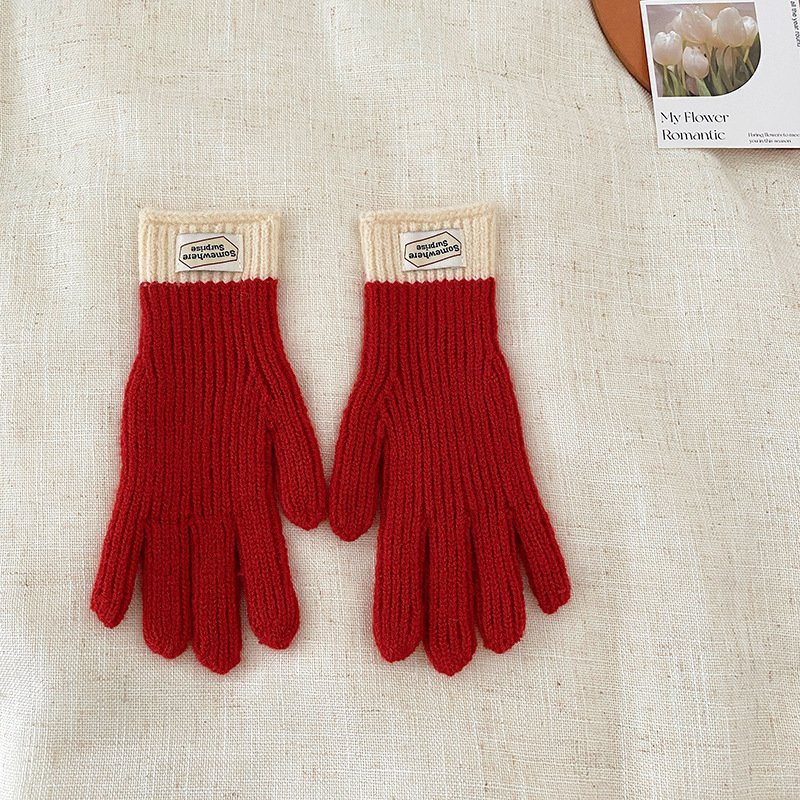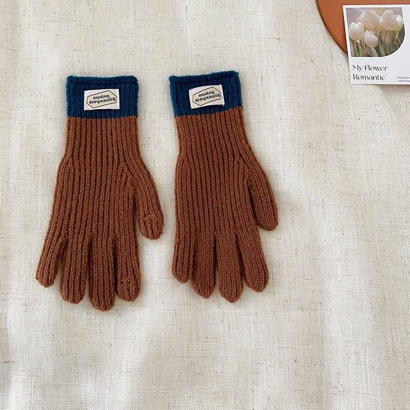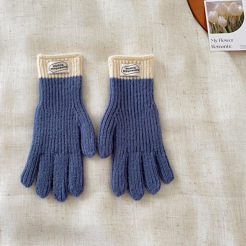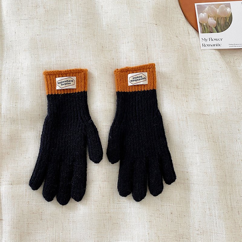 y2k Kids Unisex Autumn Winter Basic Thickening Color Knitwear Finger Gloves